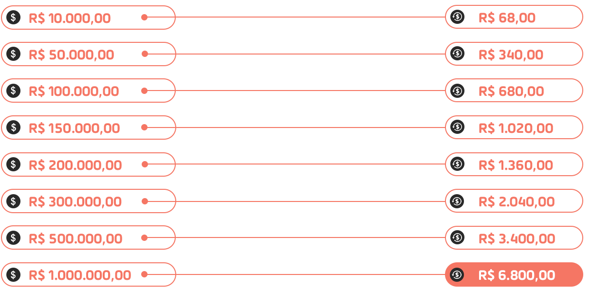 O valor de cashback varia conforme o valor portado, de acordo com a tabela abaixo: